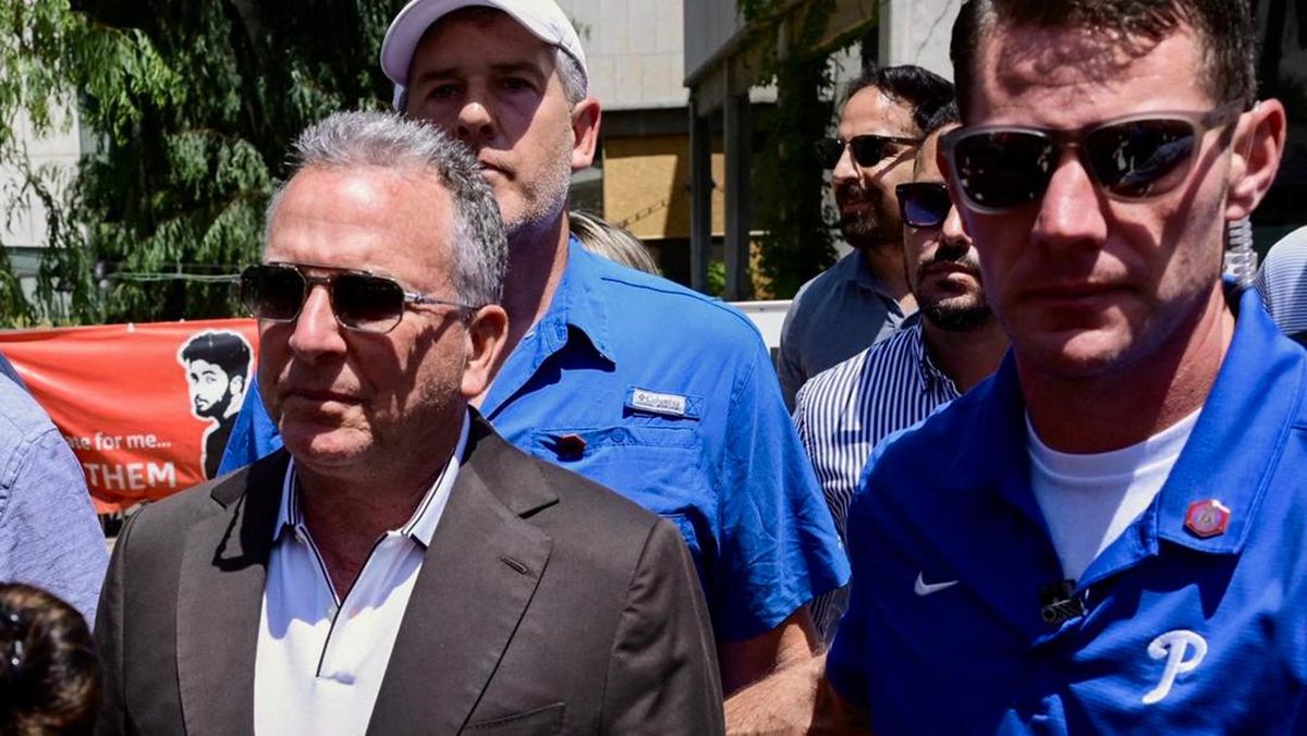 Utusan Khusus Presiden Amerika Serikat Donald Trump untuk Timur Tengah Steve Witkoff menemui keluarga para sandera di Hostages Square, Tel Aviv, pada Sabtu (2/8).
